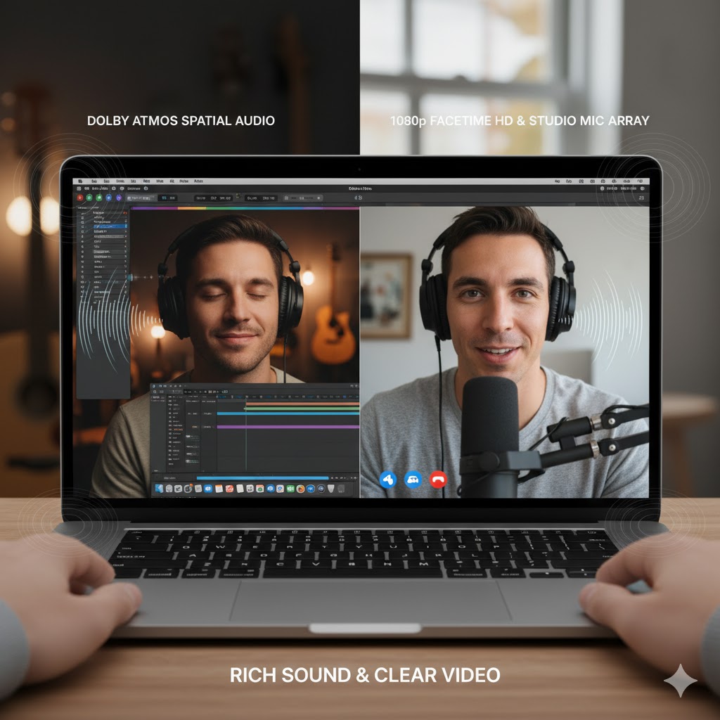 This makes the MacBook perfect for virtual meetings, online classes, and content creators who record videos or podcasts.
