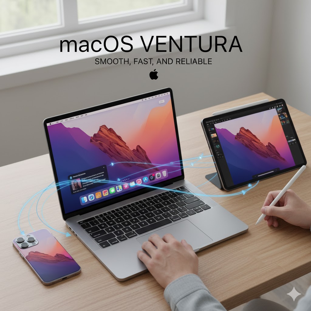 Apple’s macOS Ventura brings everything together. It’s fast, stable, and designed to make multitasking effortless. With tools like Stage Manager, Continuity, and AirDrop, moving between your Apple devices feels natural and fluid.